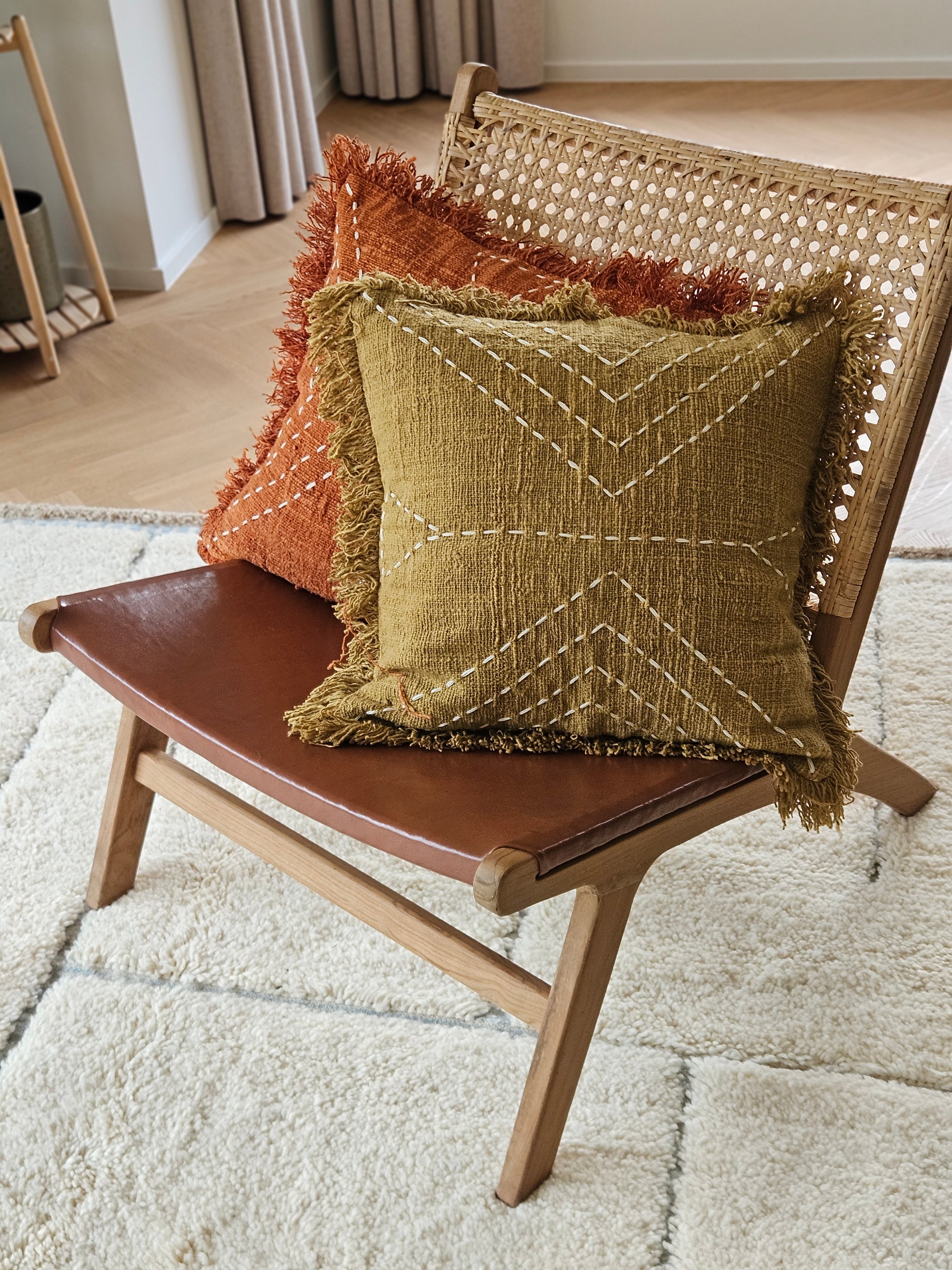 De plus, la plupart des tapis Beni Ouarain peuvent être utilisés des deux côtés. En été, placez le côté le plus plat vers le haut pour une sensation plus légère, tandis qu'en hiver, retournez le tapis pour profiter du côté plus duveteux pour plus de chaleur et de confort.