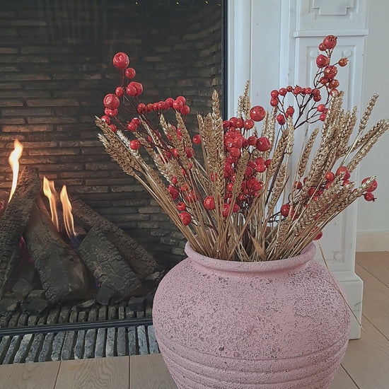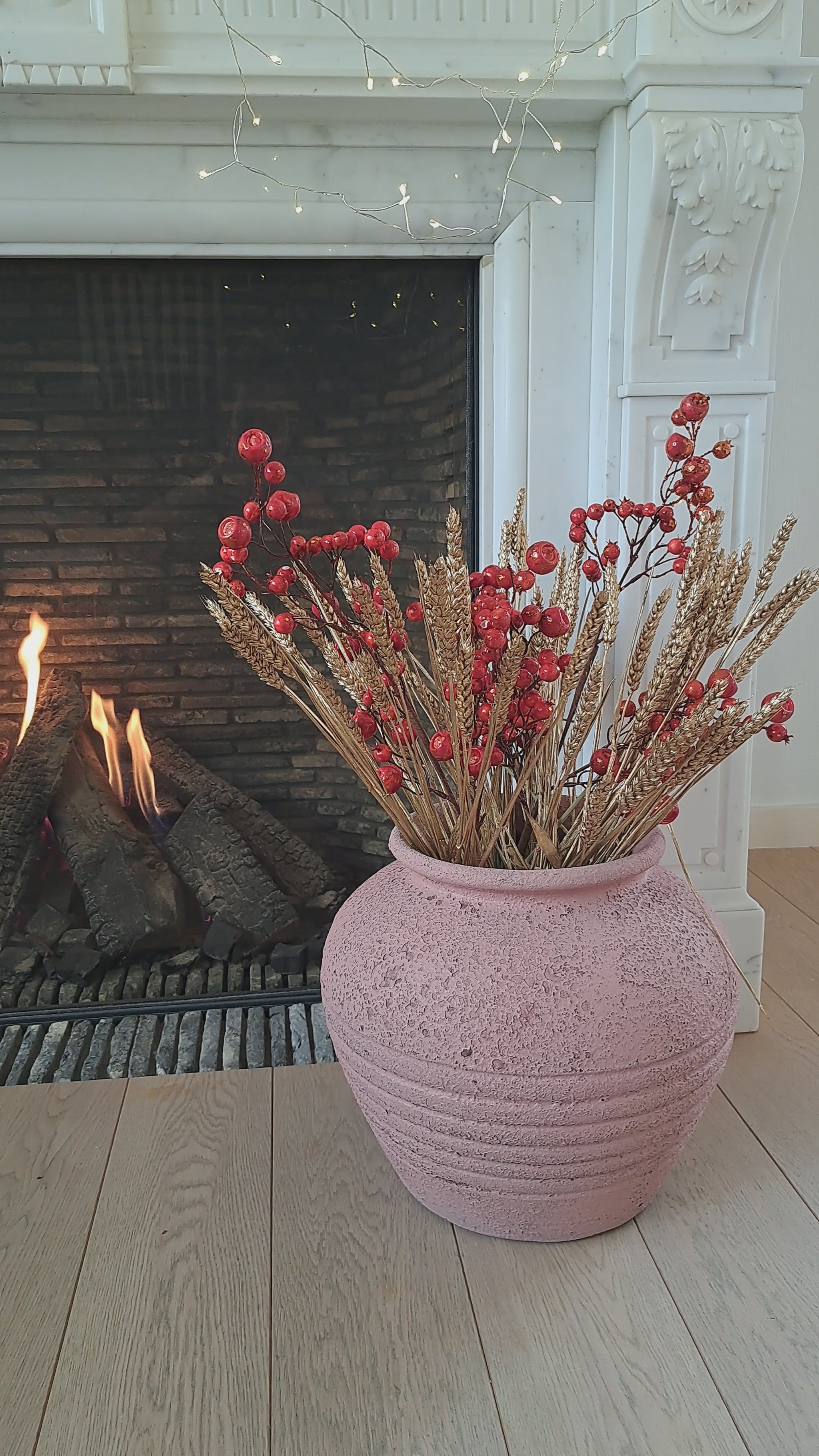 Utilisez-le comme pièce décorative ou combinez-le avec des fleurs séchées pour une ambiance rustique. Pour des fleurs fraîches, placez simplement un bocal en verre ou une bouteille en plastique coupée à l'intérieur. Disponible en deux tailles — la version plus petite et plus pleine Elisa et le design plus grand et plus élancé Luisa — et trois tons apaisants : Rosa, Crema, et Eucalipto.