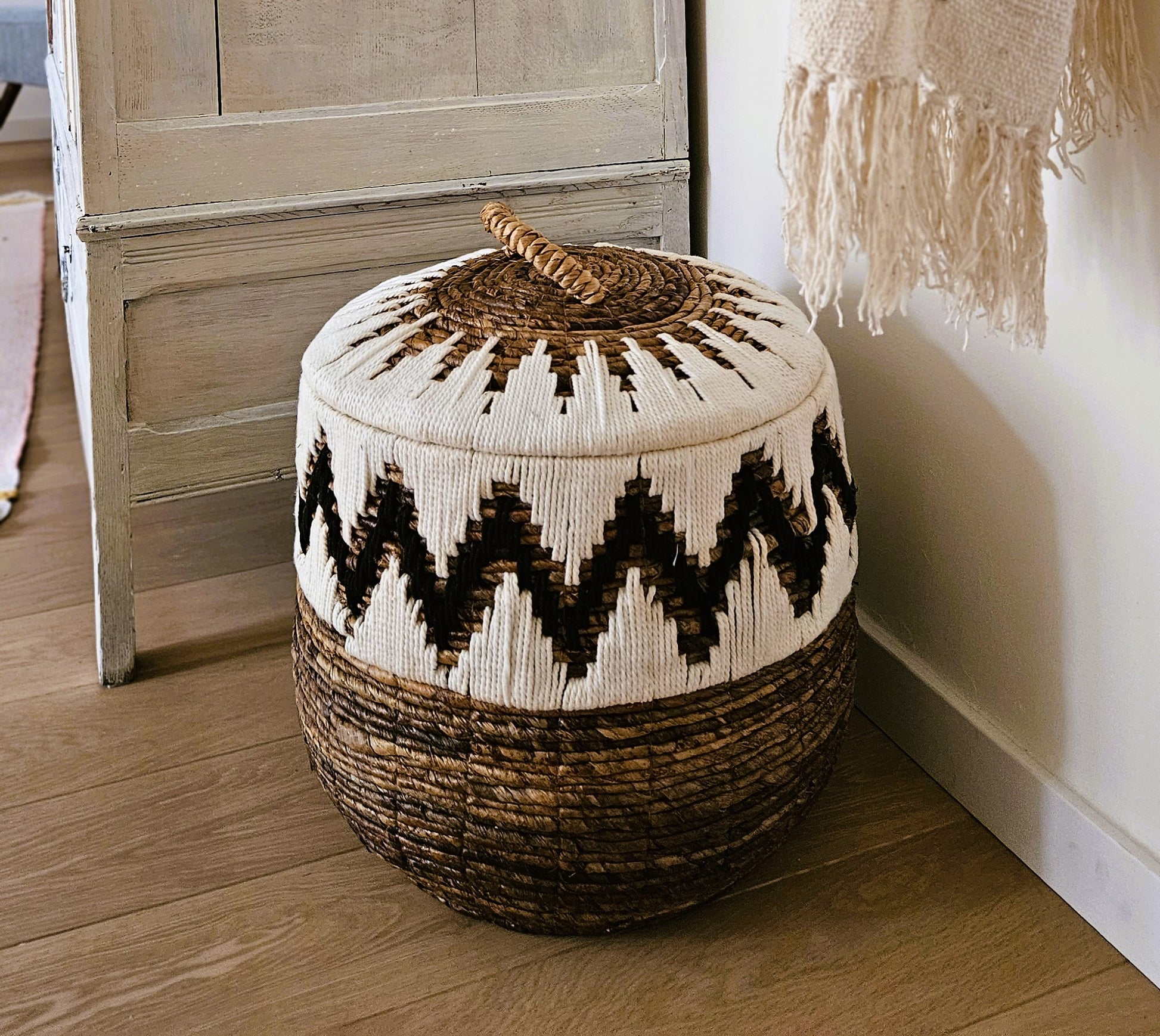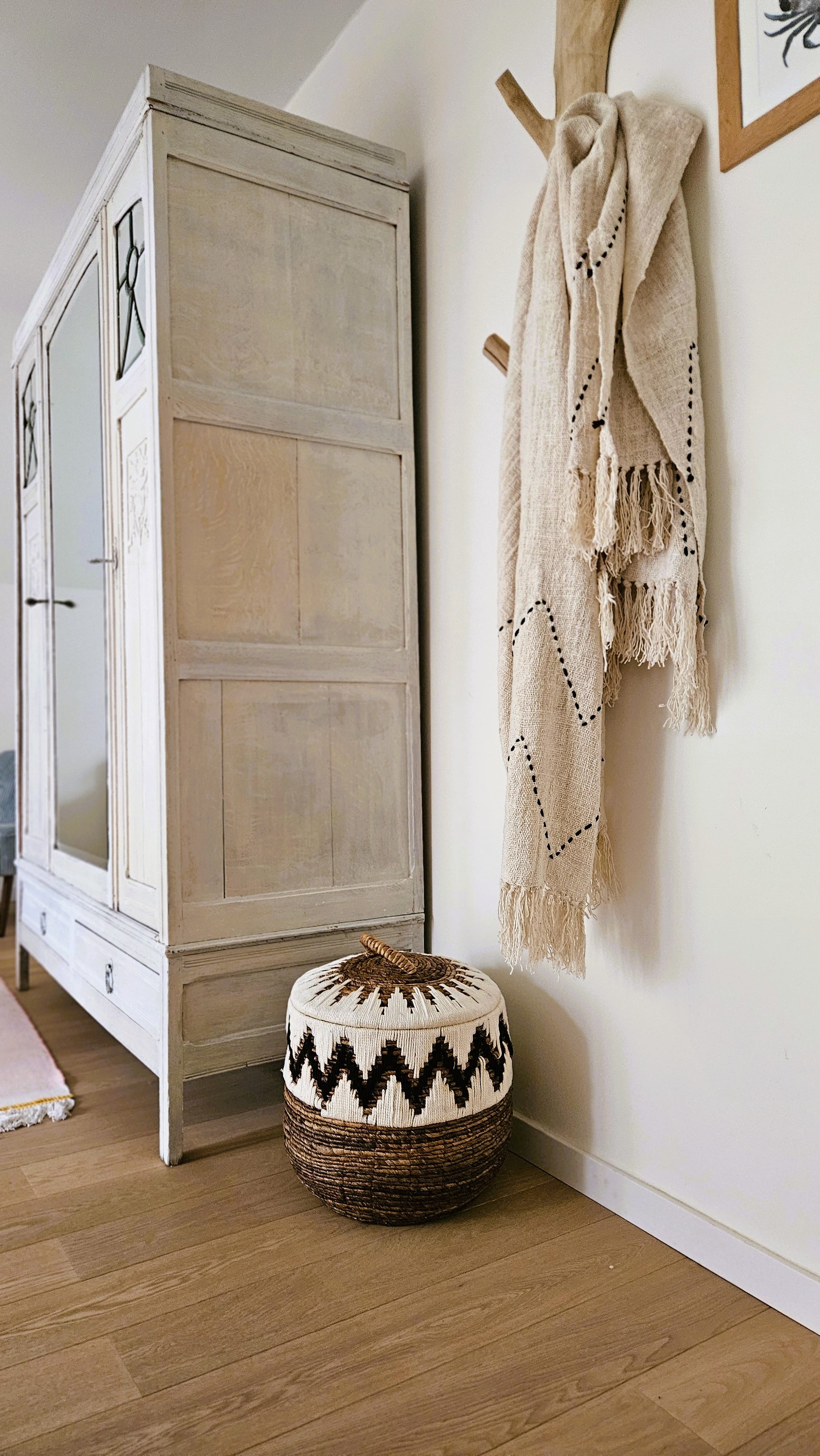 Panier de rangement Manuel – Beauté bohème artisanale en tons blancs et naturels