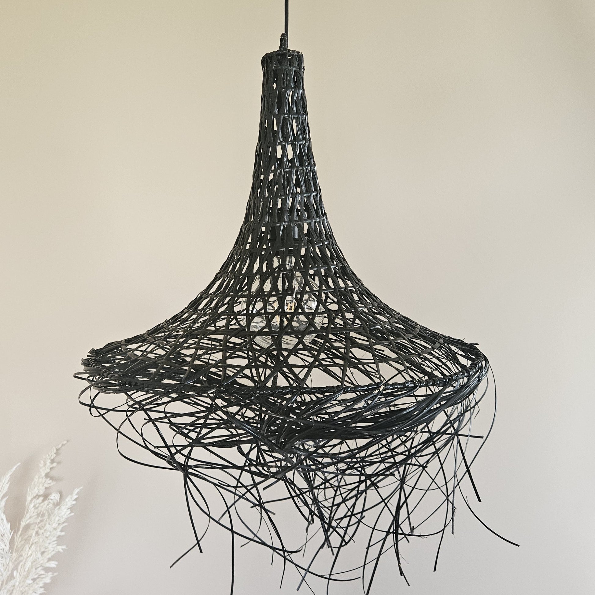 Calisto – Paralume in Rattan Nero Intrecciato a Mano con Fascino Boho