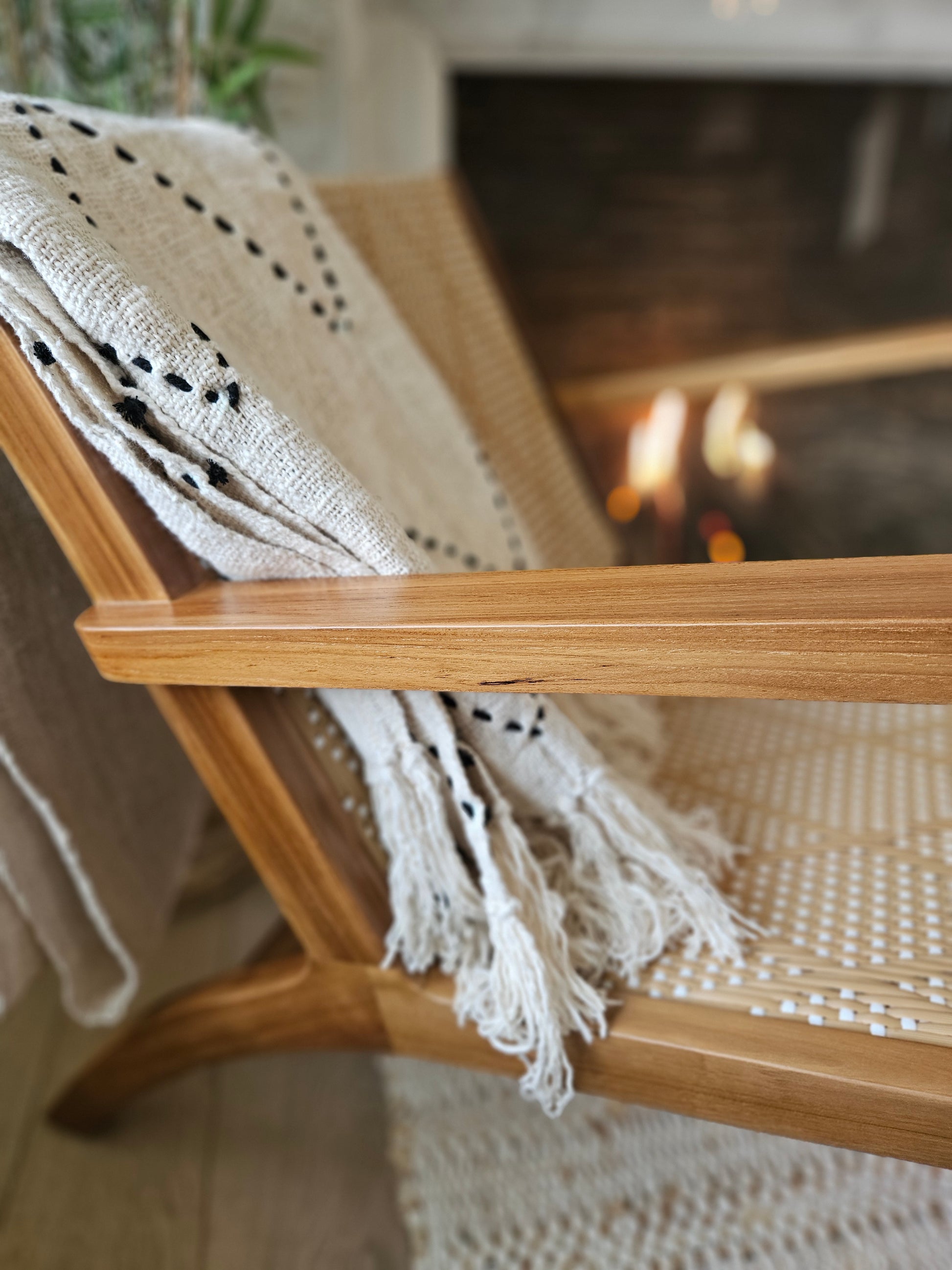 Progettata internamente e 100% commercio equo, la Chetumal riflette tutto ciò in cui crediamo: artigianalità autentica, materiali senza tempo e un estetica naturale con un tocco moderno. La palette di colori personalizzata le conferisce un atmosfera raffinata ispirata al boho, mentre la forma ergonomica ti invita a rilassarti davvero – sia che tu stia godendo gli ultimi raggi di sole sulla tua terrazza o rannicchiandoti con un libro all’interno.
