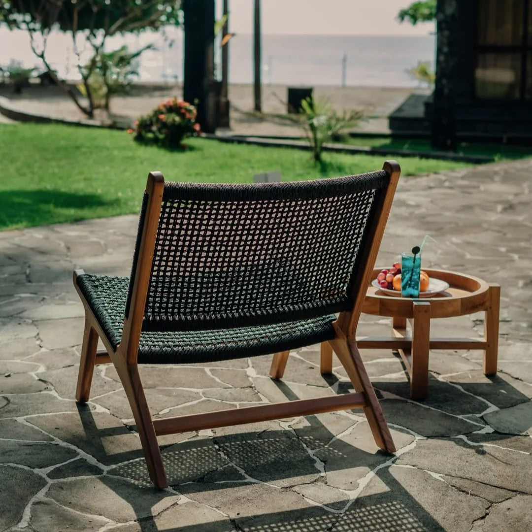 Gemaakt van gecertificeerd teak hout en handgeweven synthetisch rattan, combineert Siga-Siga duurzaamheid met een ontspannen esthetiek. Het stevige teak frame voegt natuurlijke warmte en weerbestendigheid toe, terwijl de strakke, donkere rattan zitting en rugleuning zowel comfort en luchtcirculatie bieden—ideaal voor warme klimaten.