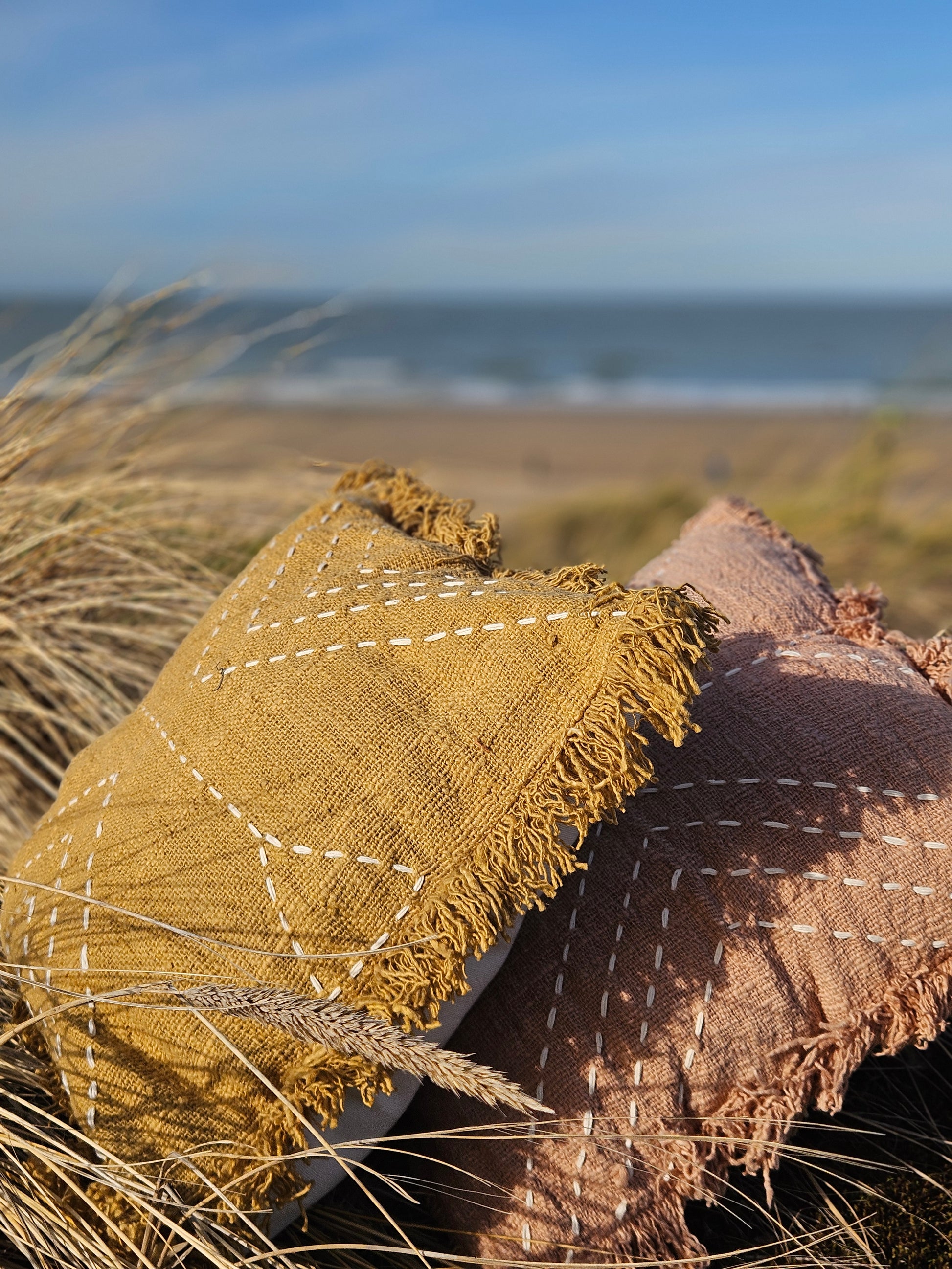 Each cover is crafted by hand with care, giving it a unique character that celebrates artisanal skill and mindful design. The tactile cotton weave and decorative embroidery capture the essence of laid-back luxury—timeless, soft, and authentic.